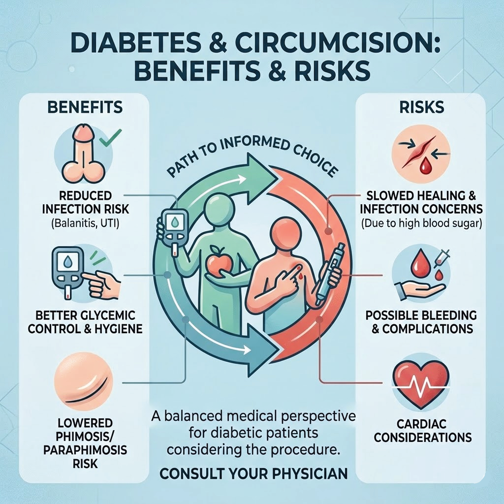 Diabetes is one of the most prevalent chronic conditions in India, and its impact on urological and genital health is often underestimated. Men living with diabetes — whether Type 1 or Type 2 — are significantly more prone to recurring foreskin infections, phimosis, balanitis, and poor wound healing that together make circumcision both more necessary and more medically complex than in non-diabetic patients.